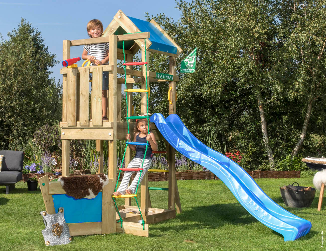Tengerre fel! Egyedi megjelenésű játszóház hajóorral, döntött létrával, kötéllétrával, csúszdával. A kormánykerék és a távcső a játék alap tartozéka.